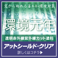 ![[アットシールド・クリア]透明赤外線反射塗料で紫外線96%カット](/img/bnr_atshield.gif)